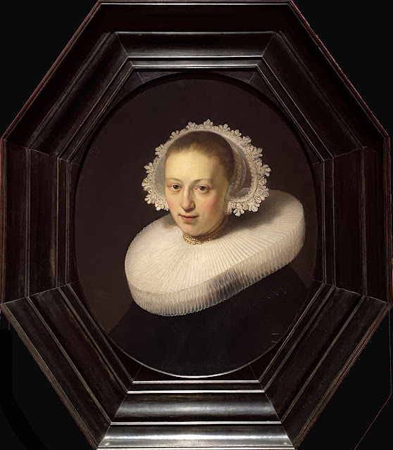 Rembrandt, Jongen vrouw met een mantel met gouden rand, 1632